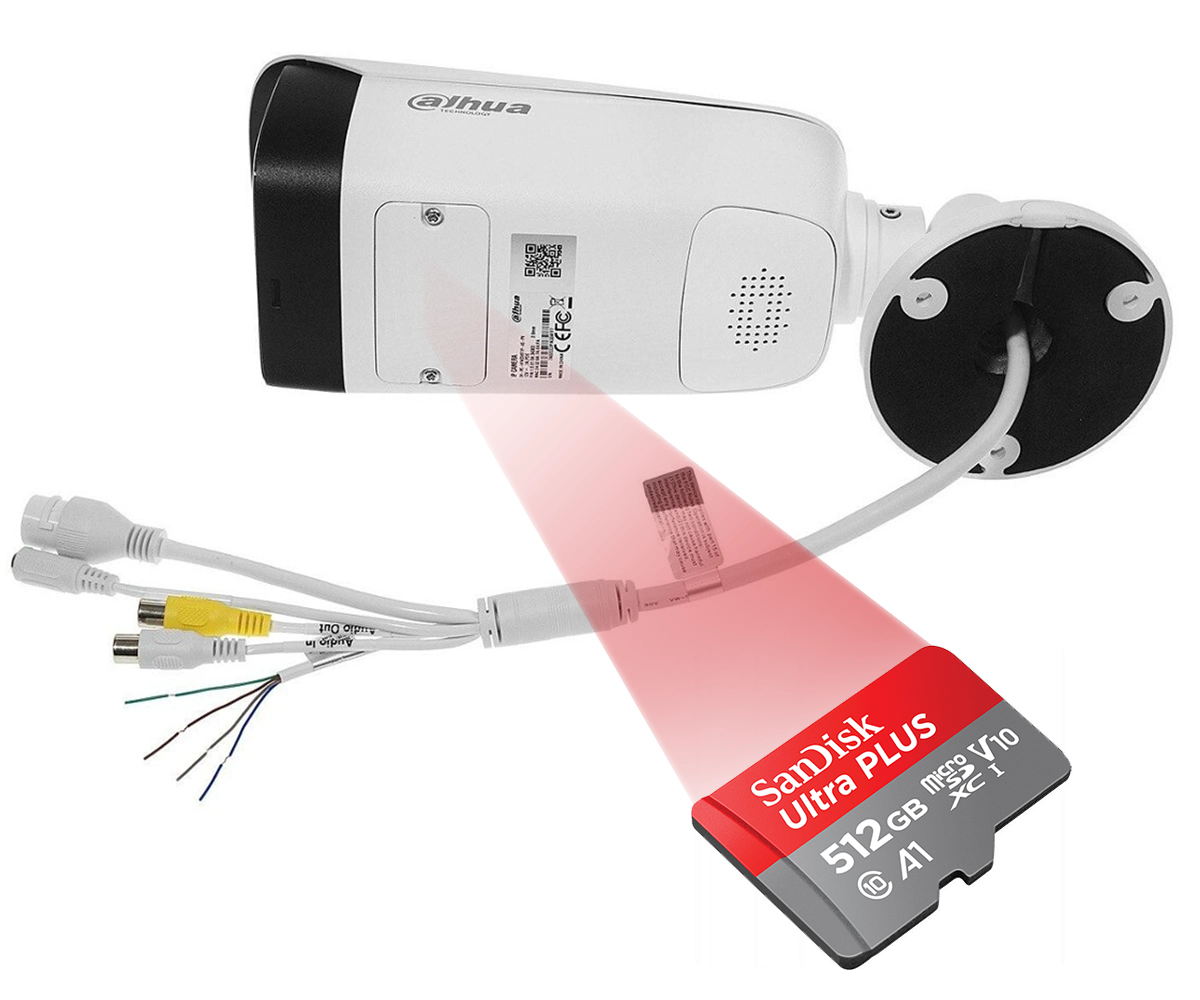 Kamera posiada również slot na karty microSD do 512 GB, dzięki czemu kamera nie wymaga dodatkowego rejestratora, by nagrywać obraz. Po przekroczeniu limitu pamięci, kamera automatycznie nadpisuje najstarsze nagrania. Pojemność 512 GB wystarcza na ok. 8-10 dni nagrywania w 25 kl/s.