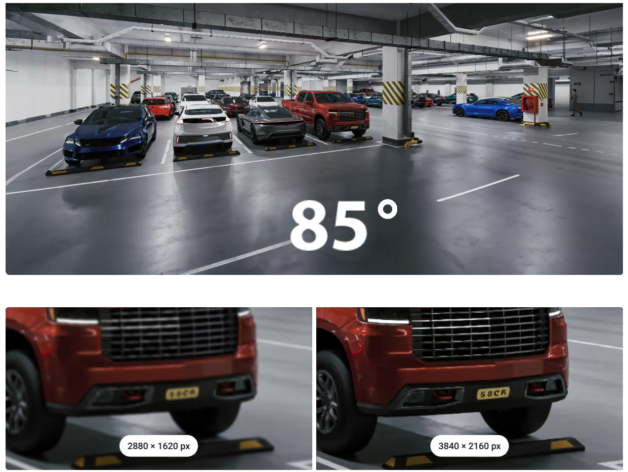 Model wyposażono w inteligentną detekcję ruchu z rozpoznawaniem obiektów (ludzie, zwierzęta, pojazdy), wspieraną przez algorytmy AI. Kamera posiada mikrofon oraz gniazdo kart microSD do 256 GB.