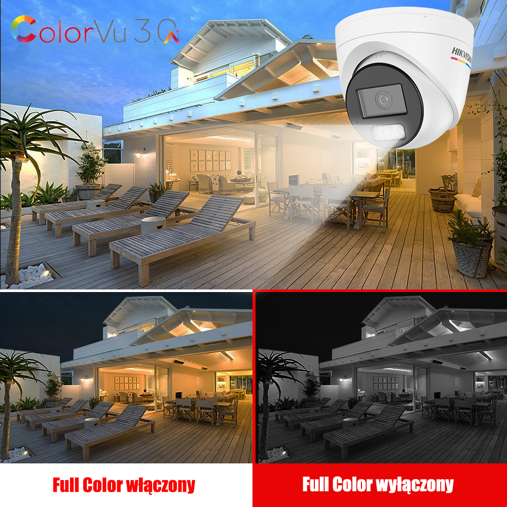 Kamery Hikvision ColorVu 3.0 są wyposażone w zaawansowane sensory i obiektywy z dużymi przysłonami, które umożliwiają rejestrowanie kolorowych obrazów nawet w bardzo słabych warunkach oświetleniowych. To znaczna przewaga nad tradycyjnymi kamerami na podczerwień (IR), które w nocy rejestrują jedynie czarno-białe obrazy.