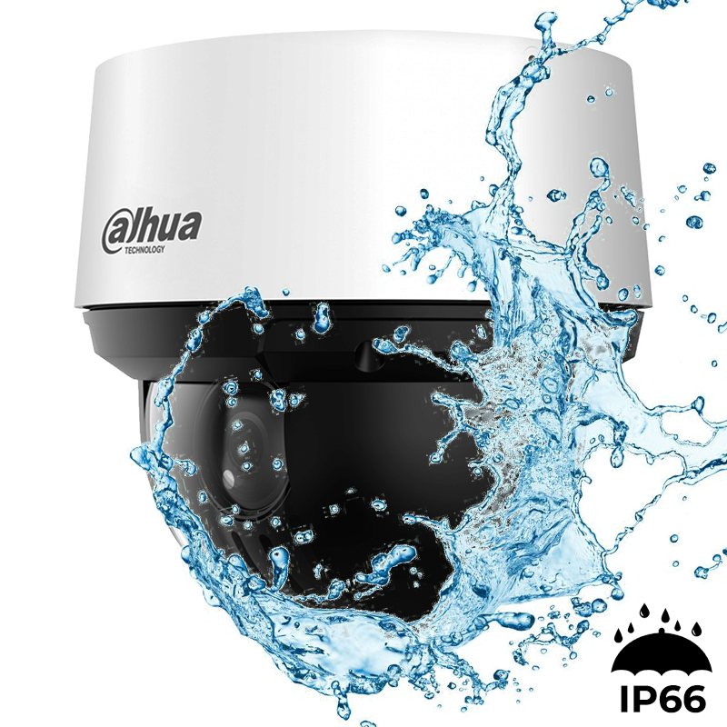 Przy wyborze kamery warto zwrócić uwagę na klasę szczelności. Jest to stopień ochrony kamery przed wpływem czynników zewnętrznych. Dzięki materiałom najwyższej jakości, z których wykonana jest obudowa kopułowa kamera Dahua SD4A216DB-HNY z klasą IP66 gwarantuje bezawaryjną pracę, chroni całkowicie przed wnikaniem pyłu oraz silnymi strumieniami wody.