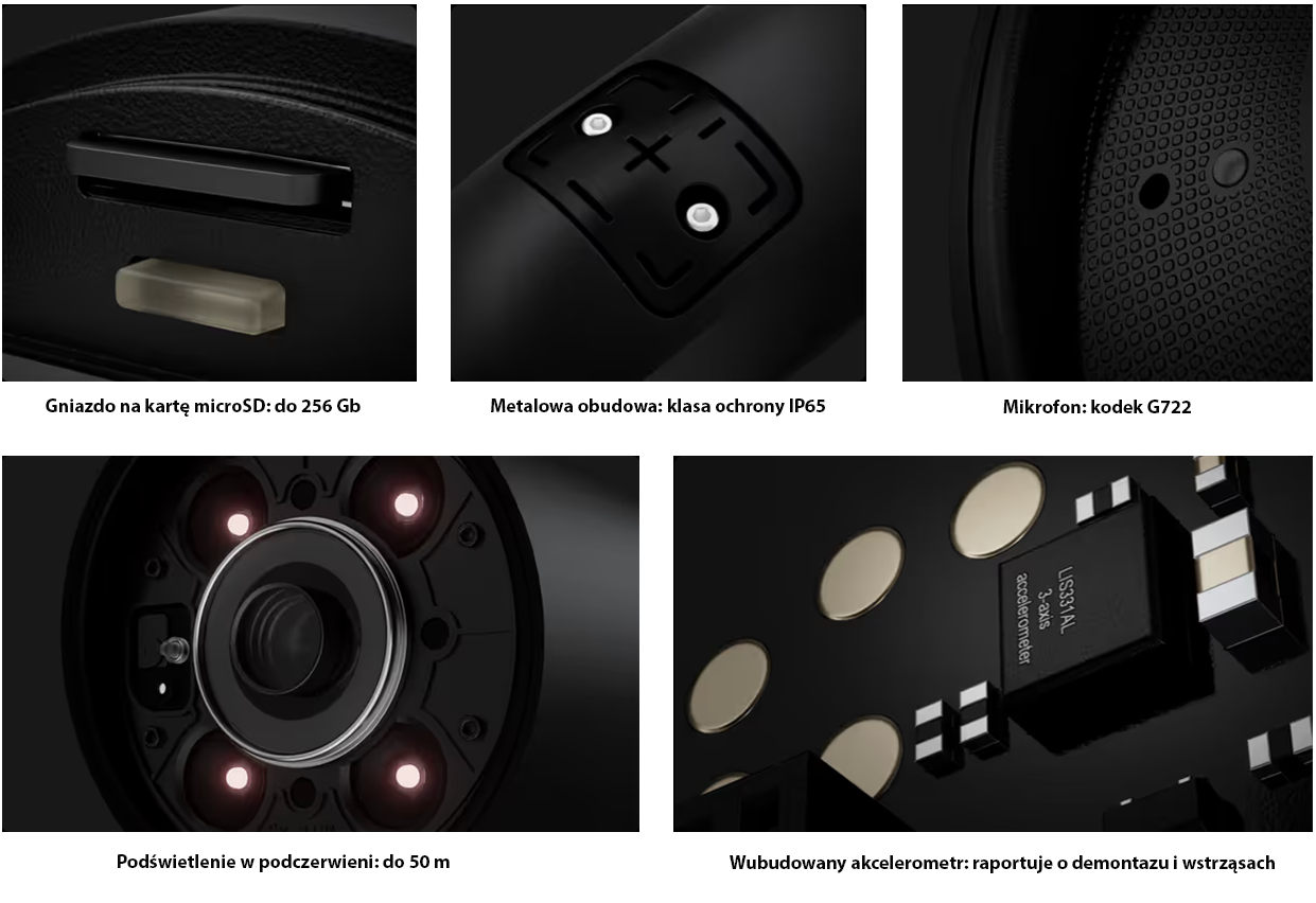 Model wyposażono w inteligentną detekcję ruchu z rozpoznawaniem obiektów (ludzie, zwierzęta, pojazdy), wspieraną przez algorytmy AI. Kamera posiada mikrofon oraz gniazdo kart microSD do 256 GB.