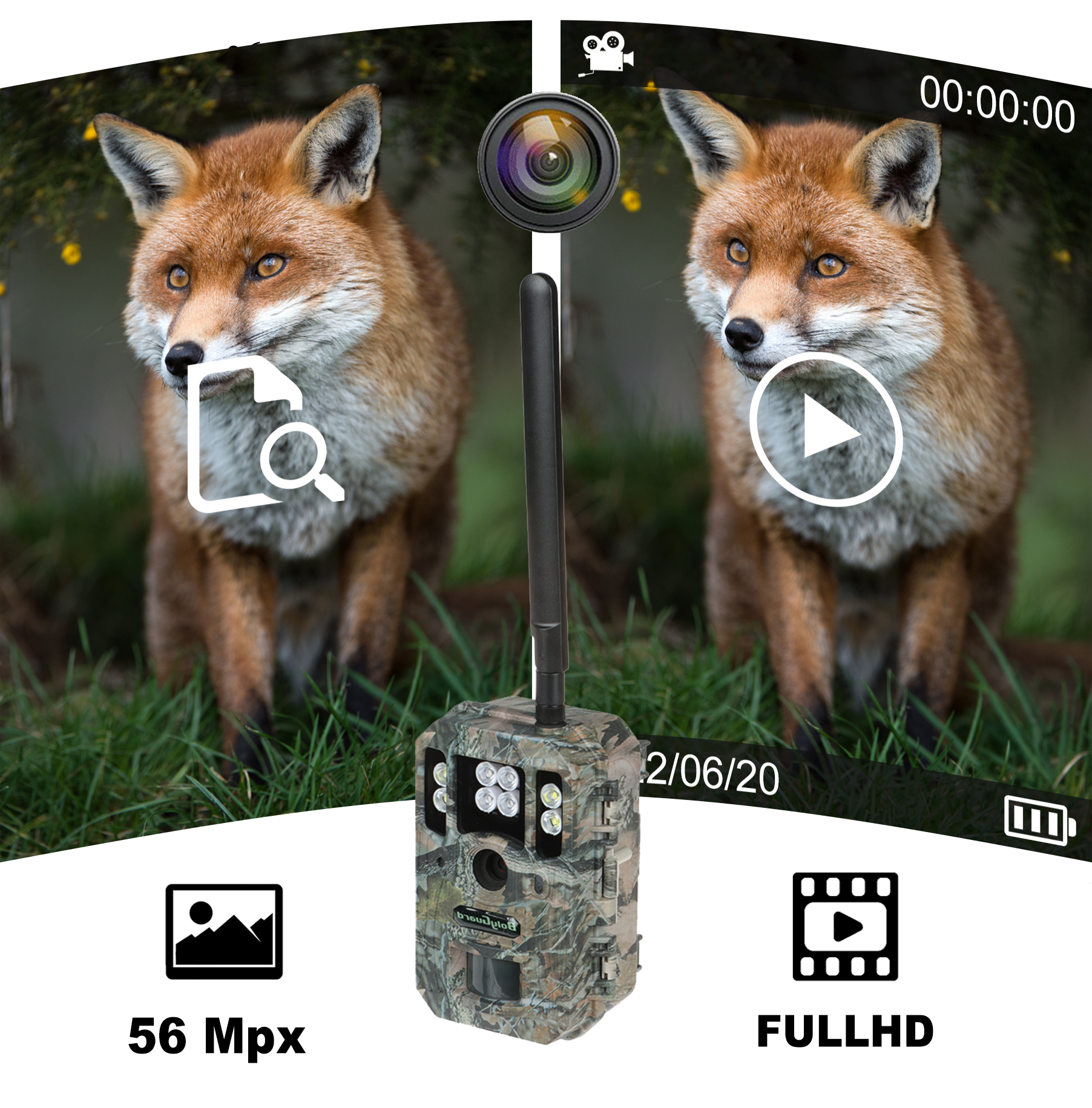 Fotopułapka, w zależności od indywidualnych ustawień, wykonuje zdjęcia co 5 min, 10 min, 15 min...55 min, 1h, 2h...8h. Dopasuj działanie urządzenia do swoich oczekiwań! Rozdzielczość wykonywanych zdjęć maksymalnie 56 MPx.