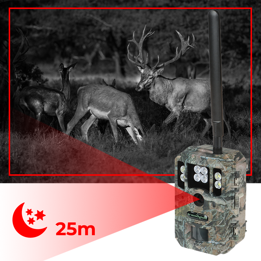 Dzięki mocnemu promiennikowi IR o zasięgu 30 metrów fotopułapka będzie rejestrować także zdarzenia nocne.