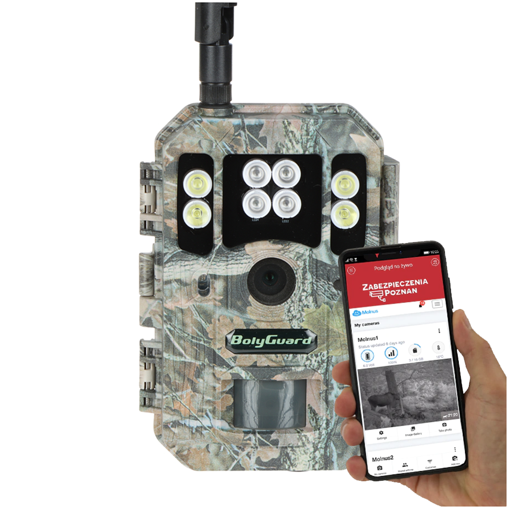 Fotopułapka obsługuje chmurę do której jest możliwy także dostęp ze smartfona za pomocą aplikacji bezpłatnej aplikacji Molnus