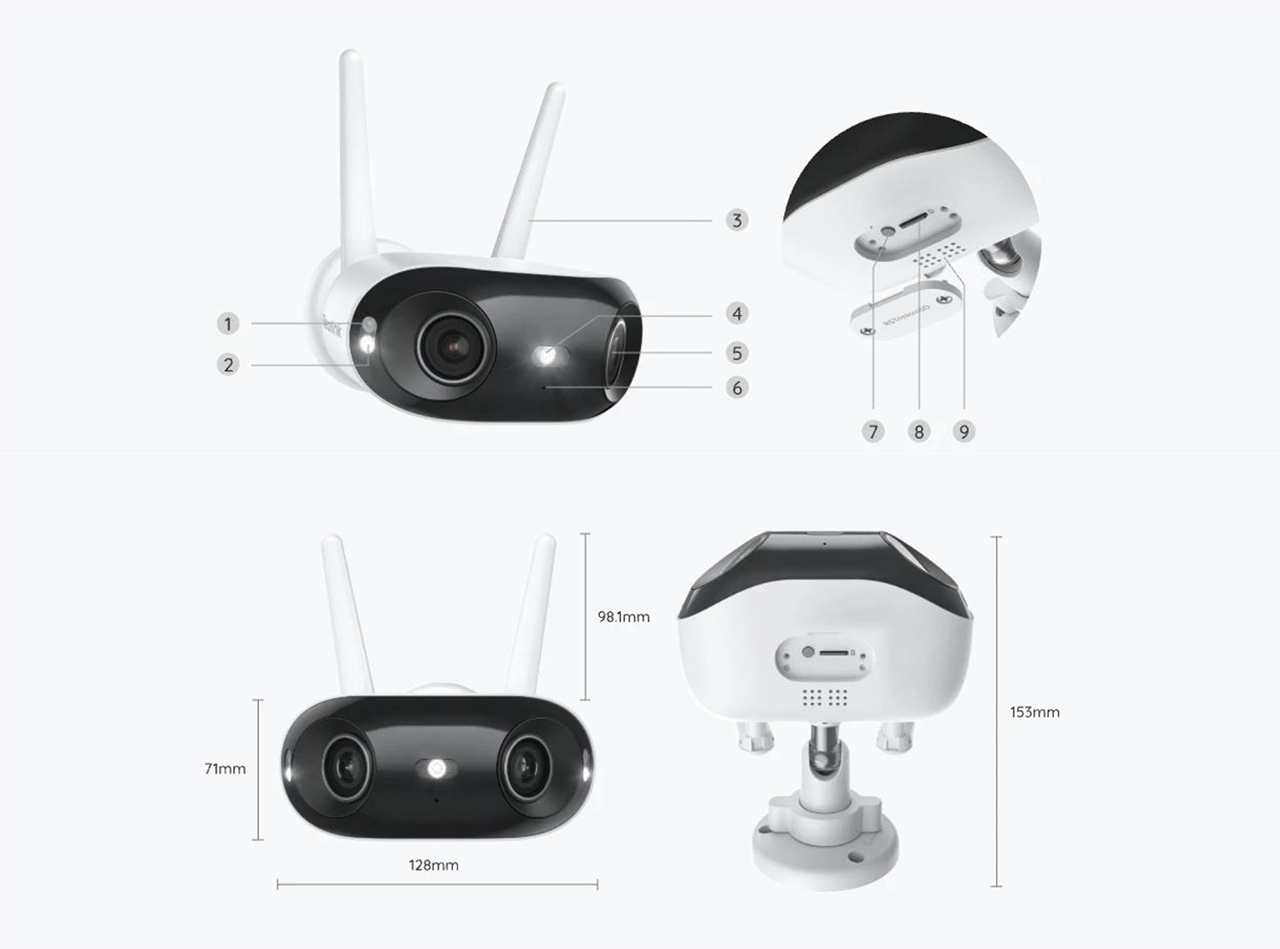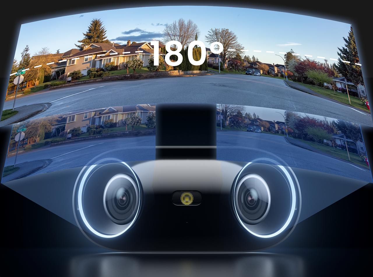 Ten innowacyjny model kamery staje się tak charakterystyczny dzięki podwójnym obiektywom, które monitorują znacznie większy obszar niż tradycyjne kamery. Pozwala widzieć pod kątem widzenia 180° i zapewnia niski poziom zniekształceń. Możesz cieszyć się większym obszarem podglądu oraz większym bezpieczeństwem w domu.