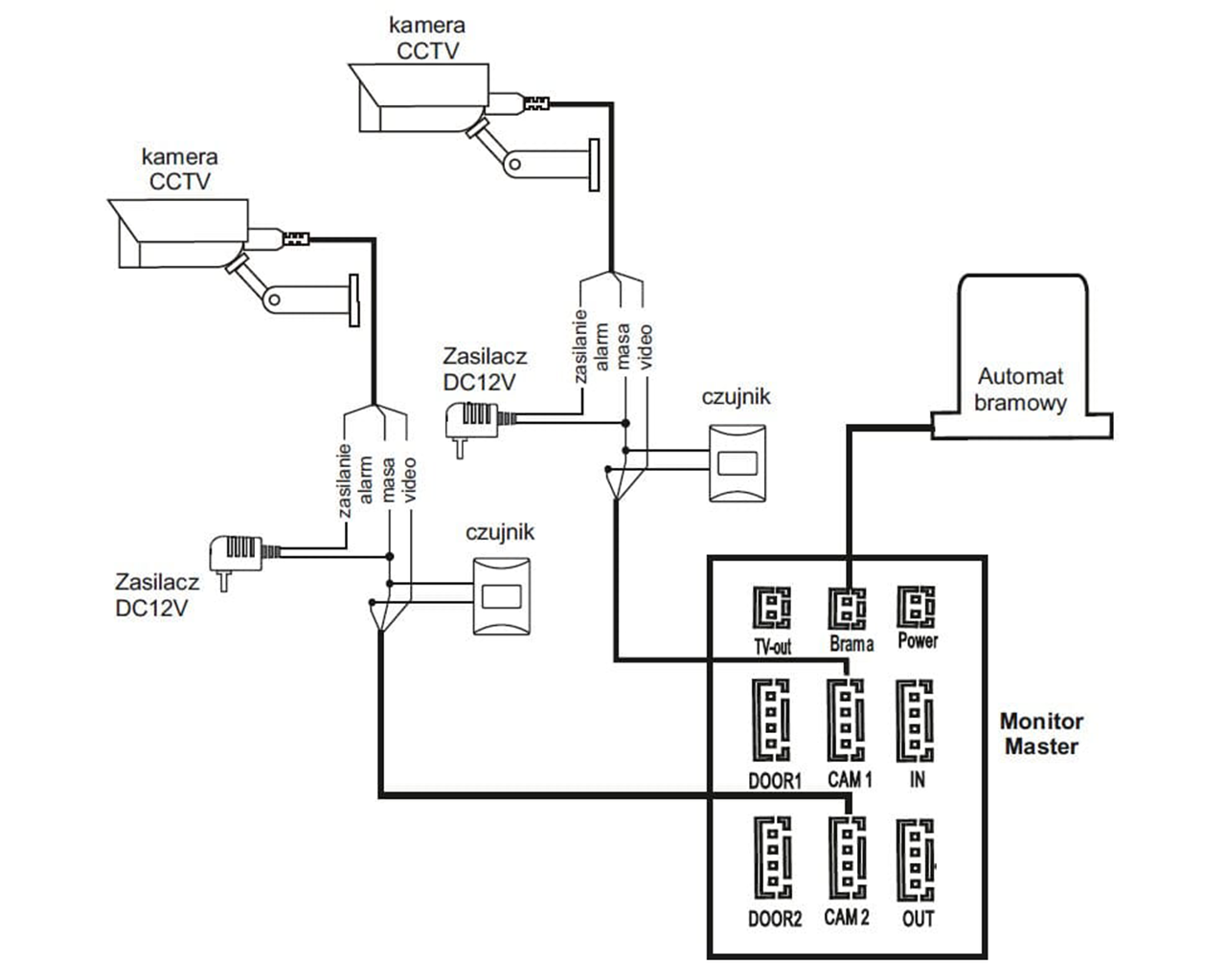 • schemat przedstawia podłączenie do wideodomfonu 5tech Verus / Verus One