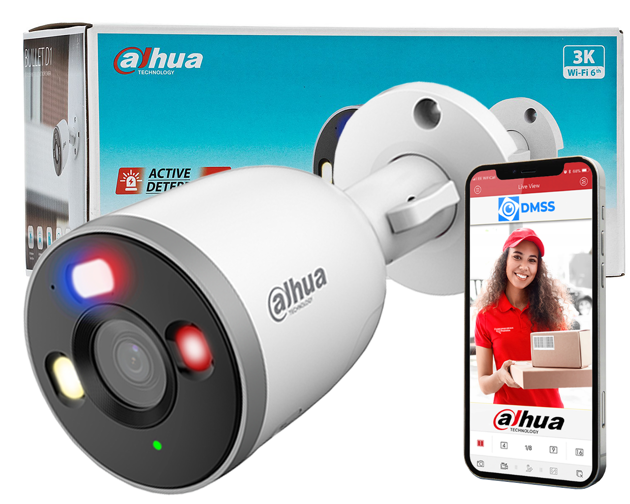 Kamera Dahua P5D-PV to nowoczesna kamera zewnętrzna o rozdzielczości 5 Mpx, zapewniająca wyraźny obraz w dzień i w nocy. Dzięki Wi-Fi 6 (2,4 GHz) łączy się bezprzewodowo z siecią – bez potrzeby prowadzenia kabli.