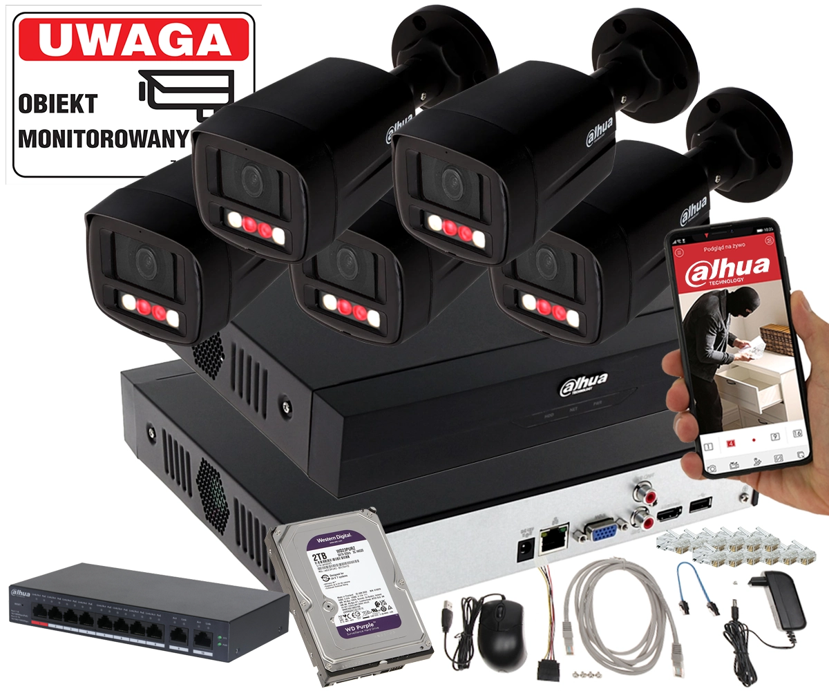 Ten zestaw pięciu kamer Dahua IPC-HFW1439TL1-A-IL-BLACK oferuje nowoczesne rozwiązanie do monitoringu IP, idealne dla wymagających użytkowników. Wyposażone w zaawansowaną technologię analizy obrazu i obiektyw stałoogniskowy 2.8 mm, te kamery dostarczają krystalicznie czysty obraz w rozdzielczości 2560×1440px dzięki zastosowaniu przetwornika CMOS 1/2.9”. Dzięki elastycznej kompresji danych H.265 / H.264 oraz dodatkowej technologii WDR 120 dB, każdy szczegół obrazu jest wyraźnie widoczny nawet w trudnych warunkach świetlnych.