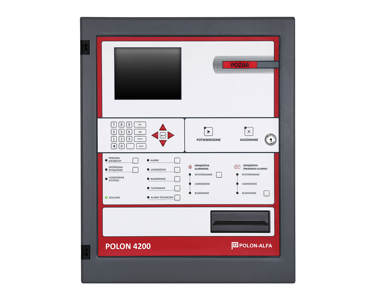 Centrala sygnalizacji pożarowej POLON 4200 jest urządzeniem integrującym wszystkie elementy pracujące w adresowalnym, interaktywnym systemie automatycznego wykrywania pożarów POLON 4000. Koordynuje pracę wszystkich urządzeń w systemie oraz podejmuje decyzję o zainicjowaniu alarmu pożarowego, wysterowaniu urządzeń sygnalizacyjnych i przeciwpożarowych oraz o przekazaniu informacji do centrum monitorowania lub systemu nadzoru. Centrala POLON 4200 jest zalecana do ochrony przeciwpożarowej różnego rodzaju obiektów, niedużych lub średniej wielkości - np. hoteli, banków, magazynów, obiektów zabytkowych, „inteligentnych” budynków itp.