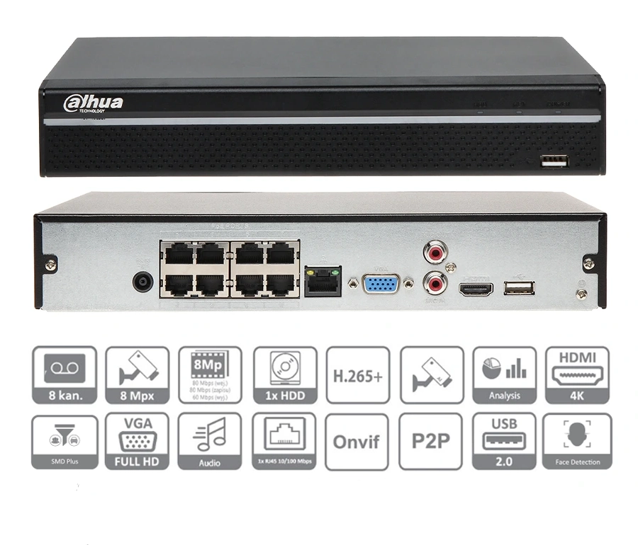 Rejestrator Dahua to nowoczesne urządzenie sieciowe, które zostało zaprojektowane do kompleksowej obsługi kamer wysokiej w bardzo wysokiej rozdzielczości.