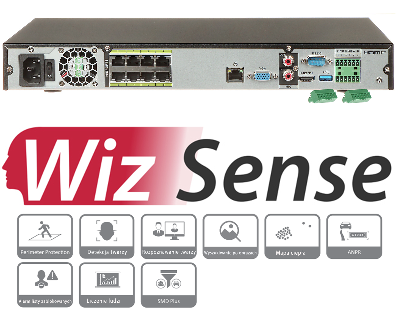 Rejestrator posiada wsparcie dla Inteligentnej Analizy Obrazu oraz detekcji ruchu, dzięki czemu doskonale nadaje się do zastosowania z nowoczesnymi kamerami IP.
