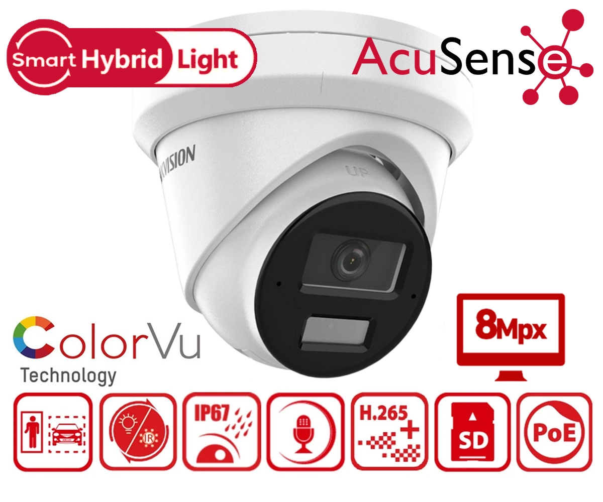Kamera DS-2CD2383G2-LI2U o rozdzielczości 8MPx typu turret to zaawansowane urządzenie monitorujące z serii Hikvision Smart Hybrid Light, przeznaczone do skutecznego nadzoru w różnych warunkach oświetleniowych. Wyposażona w technologię AcuSense oraz algorytmy deep-learning, kamera precyzyjnie rozpoznaje ludzi i pojazdy, eliminując fałszywe alarmy. Dzięki funkcji WDR (120 dB) zapewnia wyraźny obraz nawet w trudnych warunkach oświetleniowych. Dodatkowe atuty to wbudowane 2 mikrofony, slot na kartę microSD (do 512GB) oraz obudowa o klasie szczelności IP67, umożliwiająca montaż zewnętrzny.