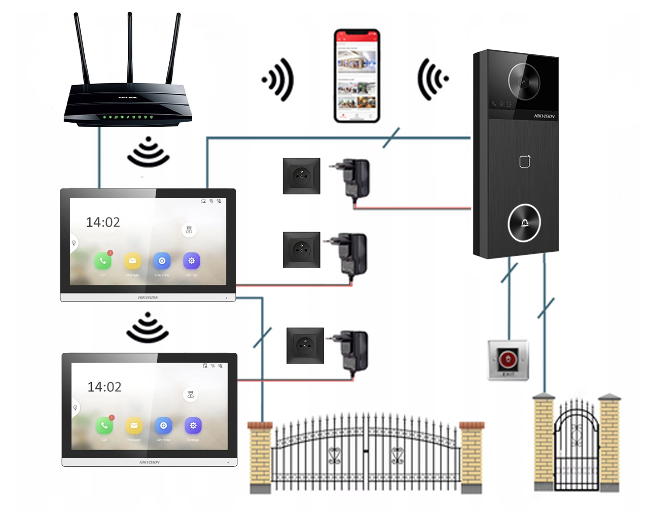 Oferowany zestaw Hikvision (monitor oraz stacja bramowa) posiadają wbudowane 2 interfejsy sieciowe: