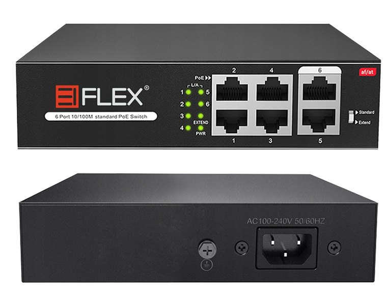 Switch PoE w zestawie służy do zasilenia urządzeń bezpośrednio poprzez przewód UTP. Switch pozwala również na dodatnie do systemu dodatkowych kamer sieciowych IP.