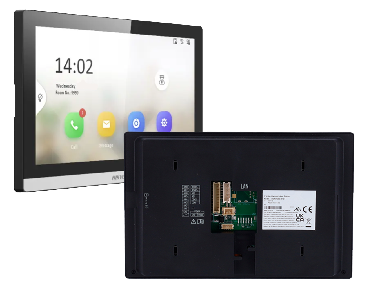 DS-KH6350-WTE1 to wewnętrzny panel wideodomofonu IP marki Hikvision. Monitor pozwala na komunikację z zewnętrzną stacją bramową, przekierowanie połączeń na telefon (w aplikacji) oraz wyświetlanie obrazu z kamery panelu zewnętrznego, a także obrazu z systemu monitoringu IP.
