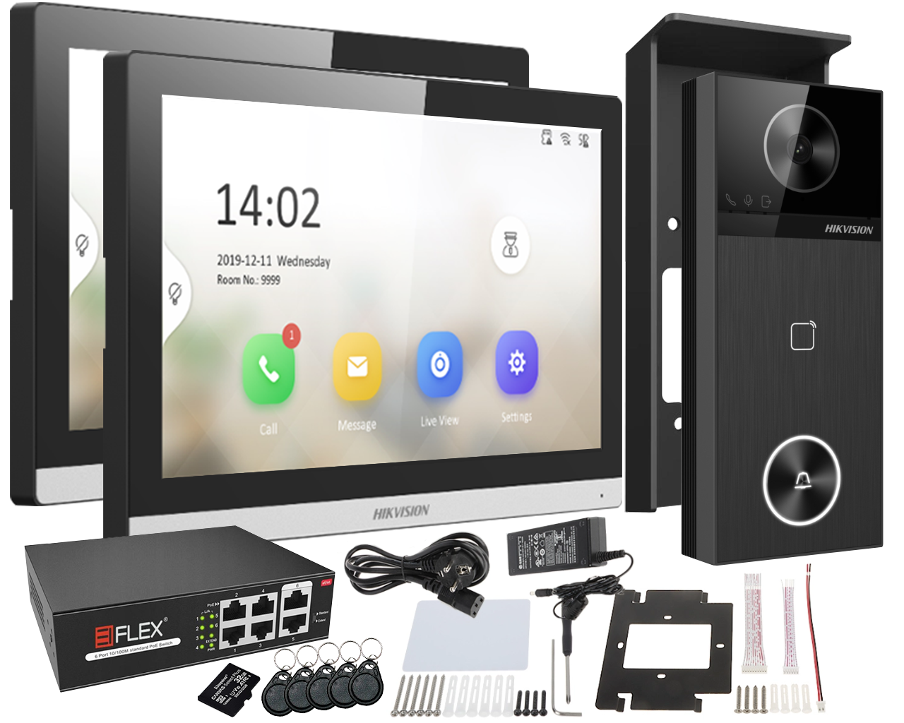 Oferowany zestaw Hikvision (monitor oraz stacja bramowa) posiadają wbudowane 2 interfejsy sieciowe: