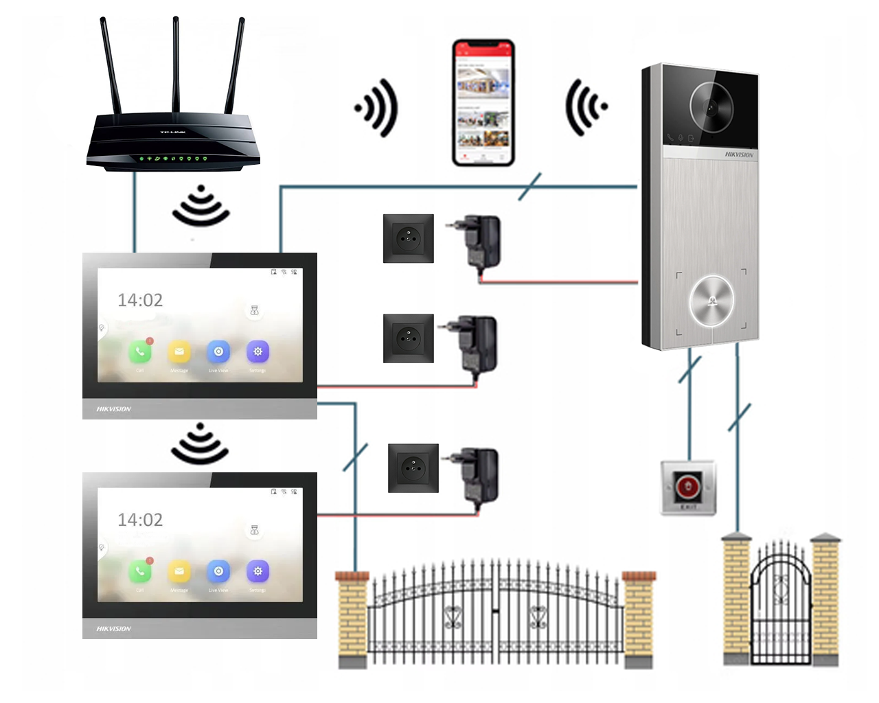 Oferowany zestaw Hikvision (monitor oraz stacja bramowa) posiadają wbudowane 2 interfejsy sieciowe:
