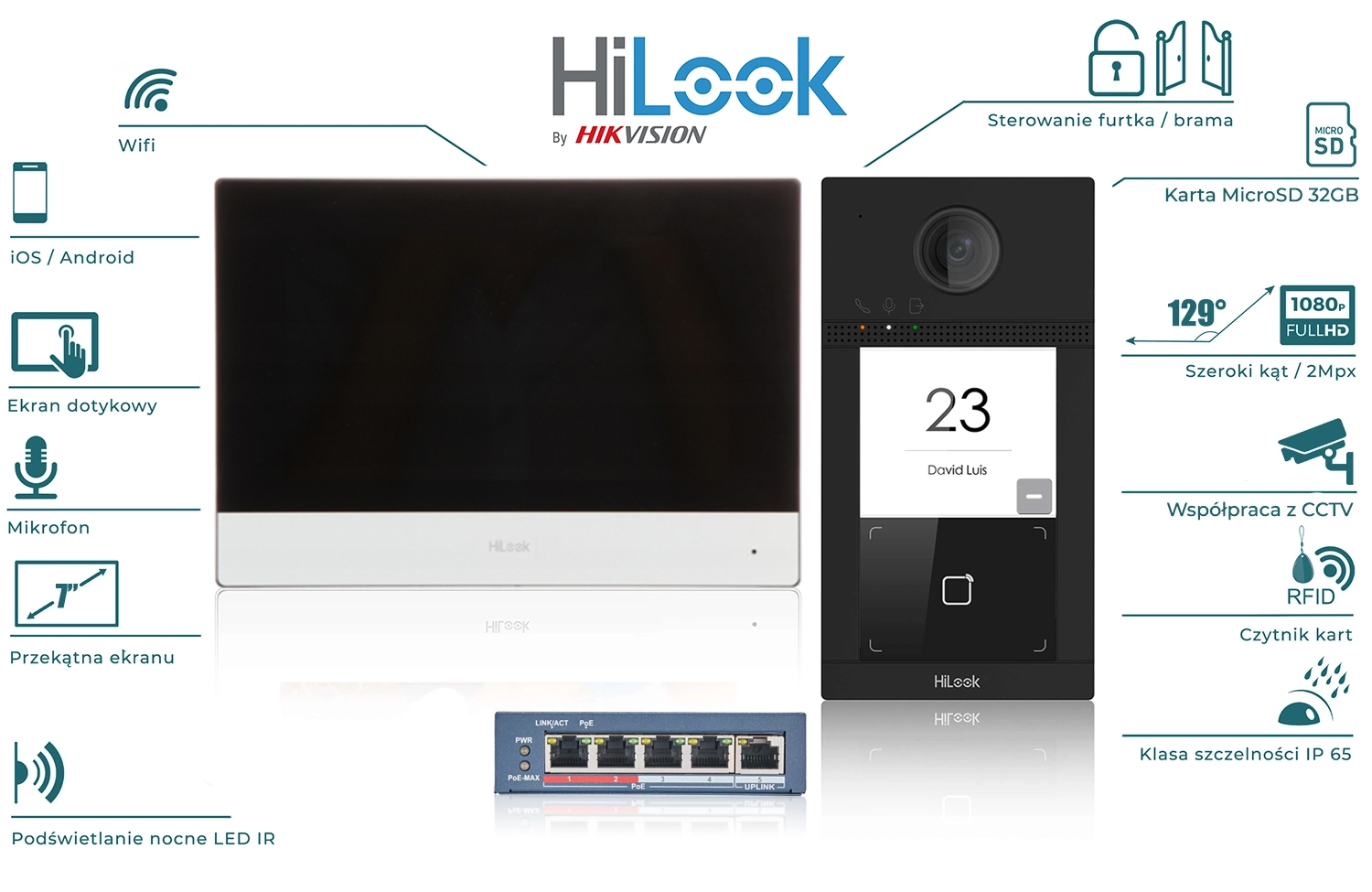 Oferowany zestaw HiLook (monitor oraz stacja bramowa) posiadają wbudowane 2 interfejsy sieciowe: