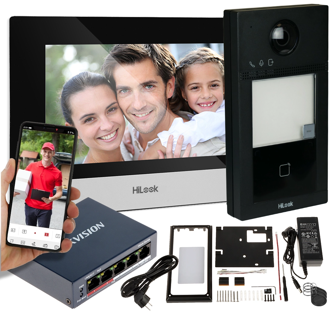 Instalacja jest łatwa dzięki technologii Power over Ethernet (PoE) – potrzebny jest tylko jeden kabel. Urządzenie jest kompatybilne z kamerami Hikvision, które można podłączyć do dołączonego Switcha PoE, umożliwiając monitoring otoczenia na monitorze zestawu lub poprzez aplikację Hik-Connect. IP-VIS-Pro to kompleksowe rozwiązanie dla bezpieczeństwa i komfortu użytkownika.