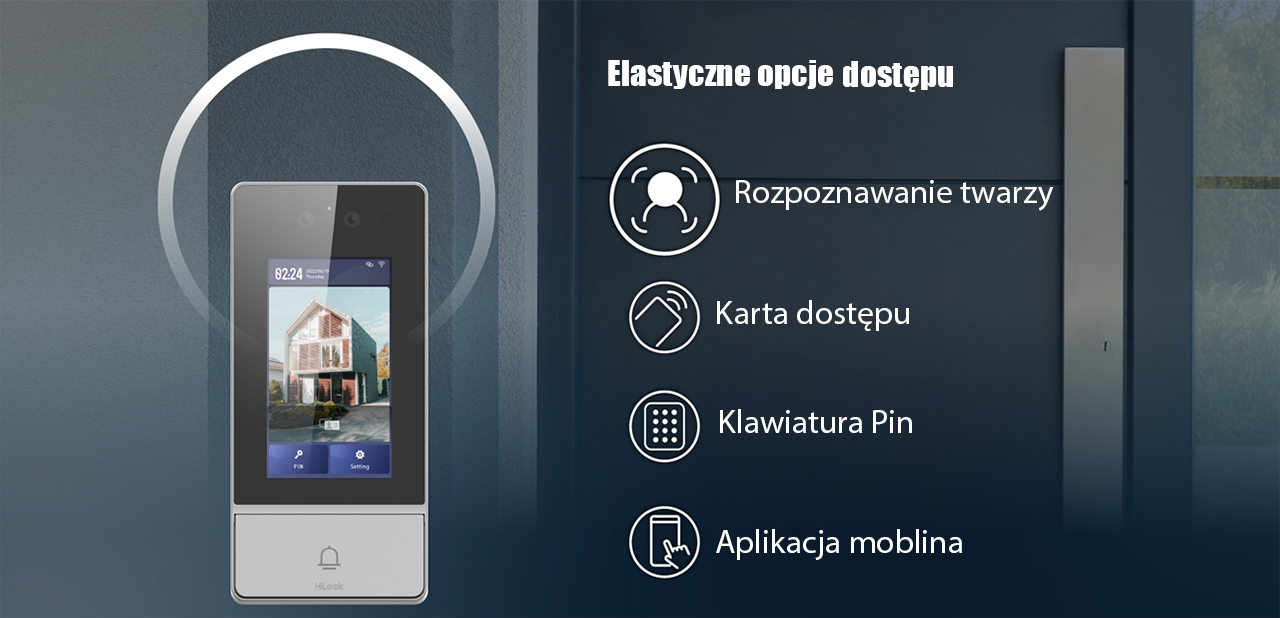 Wideodomofon HiLook IP-VIS-ULTRA oferuje szeroki wybór metod autoryzacji, które sprawdzą się zarówno w domu, jak i w firmie. Urządzenie umożliwia korzystanie z kilku wygodnych sposobów otwierania drzwi: