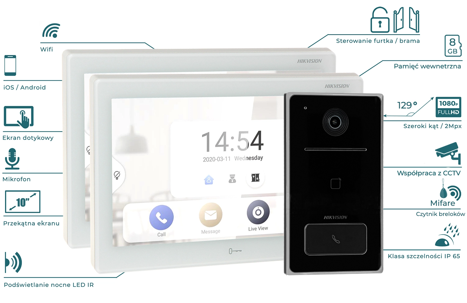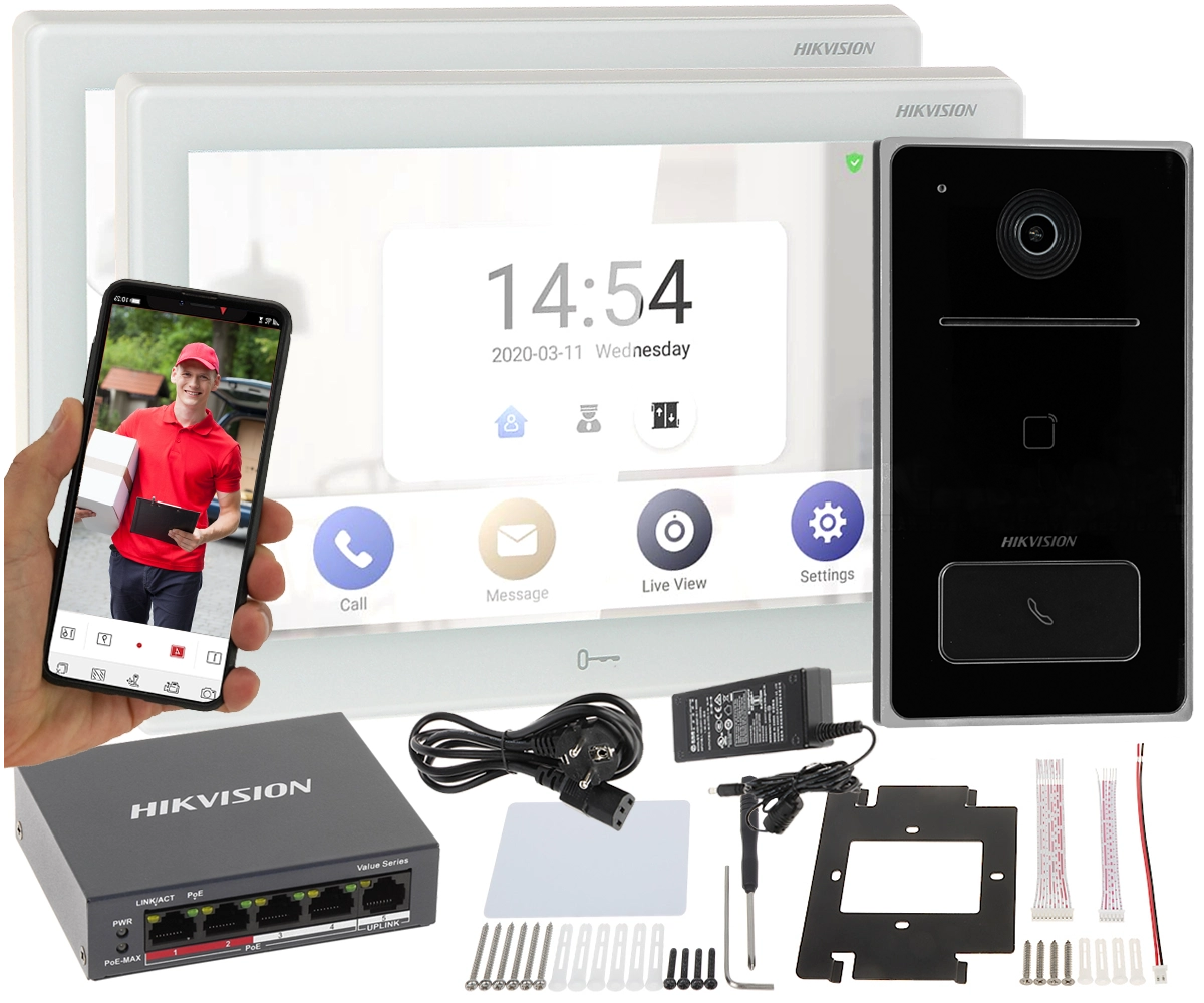 Oferowany zestaw Hikvision (monitor oraz stacja bramowa) posiadają wbudowane 2 interfejsy sieciowe: