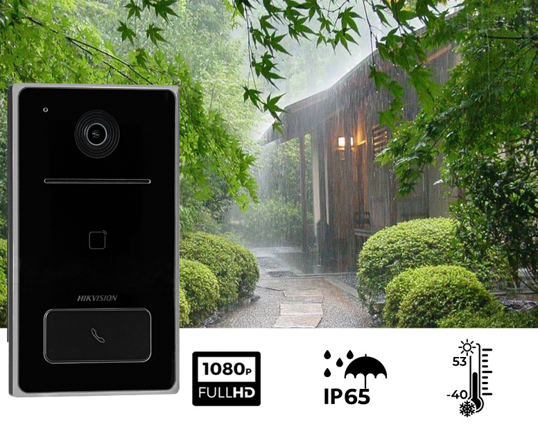 Jednorodzinny zestaw wideodomofonowy IP marki Hikvision to świetne rozwiązanie dla klientów poszukujących nowoczesnych i designerskich rozwiązań dla systemów kontroli wejścia na teren posesji.