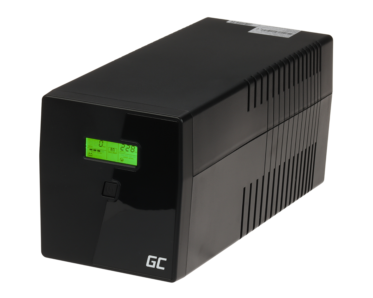 Zasilacz awaryjny Green Cell UPS08 Power Proof 1000 VA / 700 W w topologii Line-Interactive z AVR skutecznie chroni podłączone urządzenia przed przerwami w dostawie prądu oraz wahaniami napięcia. W przypadku zaniku zasilania przełącza się na pracę akumulatorową w czasie 2–6 ms. Urządzenie wyposażono w akumulatory AGM 2×12 V / 7 Ah, czytelny wyświetlacz LCD, interfejs USB, gniazda 2×Schuko i 2×IEC oraz zabezpieczenie linii RJ45.