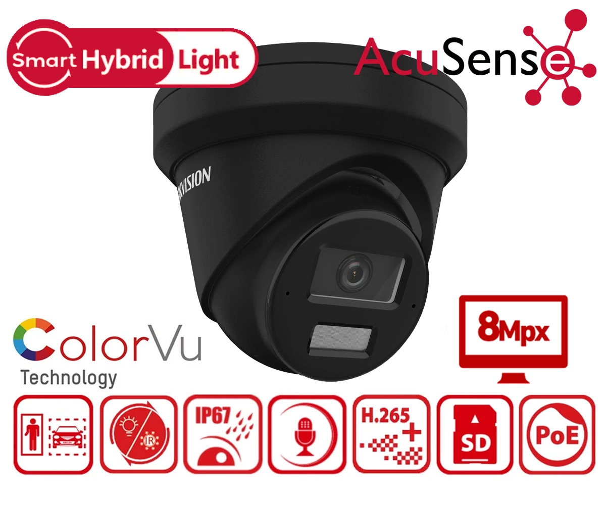 Kamera DS-2CD2383G2-LI2U o rozdzielczości 8MPx typu turret to zaawansowane urządzenie monitorujące z serii Hikvision Smart Hybrid Light, przeznaczone do skutecznego nadzoru w różnych warunkach oświetleniowych. Wyposażona w technologię AcuSense oraz algorytmy deep-learning, kamera precyzyjnie rozpoznaje ludzi i pojazdy, eliminując fałszywe alarmy. Dzięki funkcji WDR (120 dB) zapewnia wyraźny obraz nawet w trudnych warunkach oświetleniowych. Dodatkowe atuty to wbudowane 2 mikrofony, slot na kartę microSD (do 512GB) oraz obudowa o klasie szczelności IP67, umożliwiająca montaż zewnętrzny.