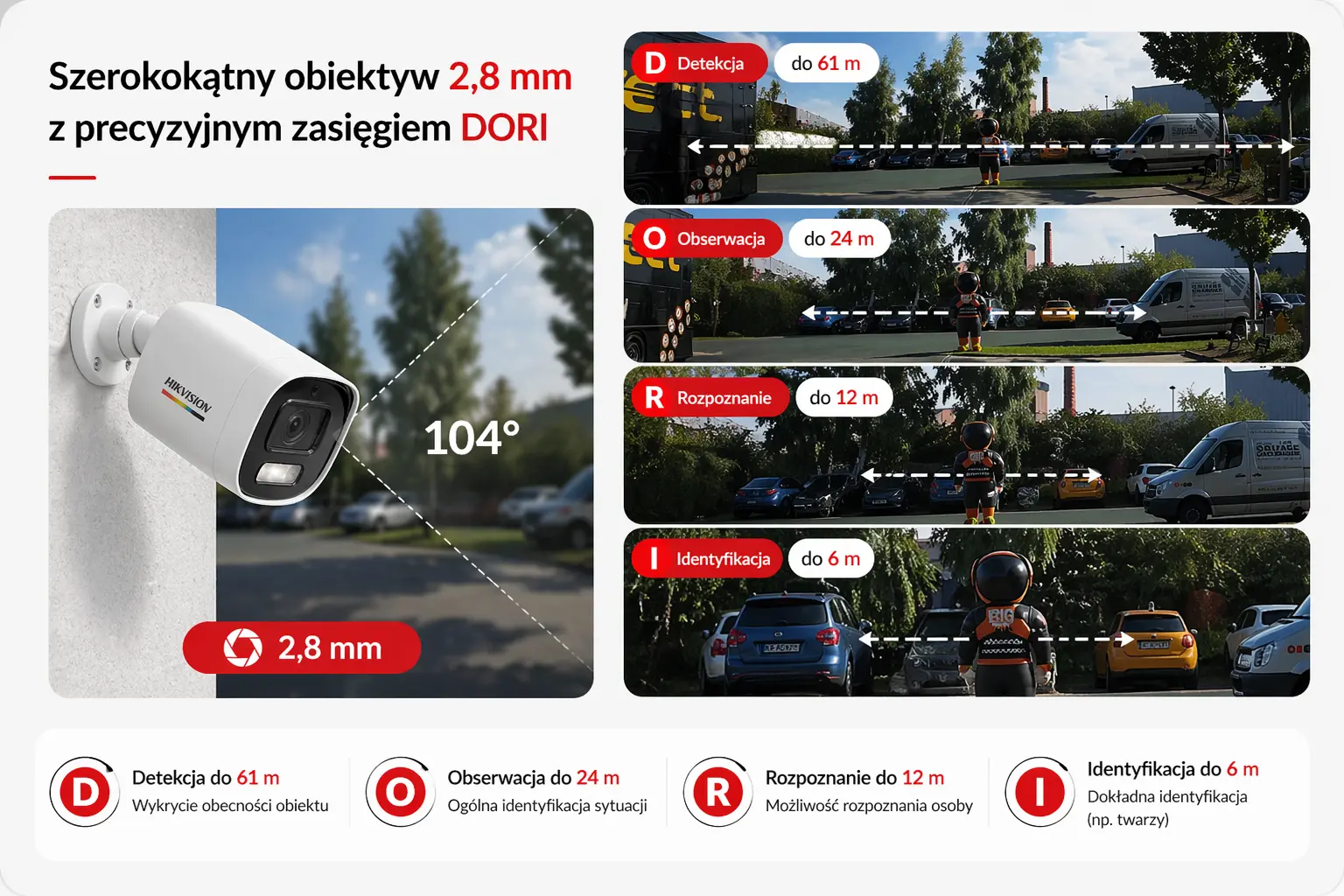Zastosowana optyka gwarantuje nie tylko szeroki obraz, ale również czytelność detali na różnych dystansach, co potwierdzają parametry DORI: