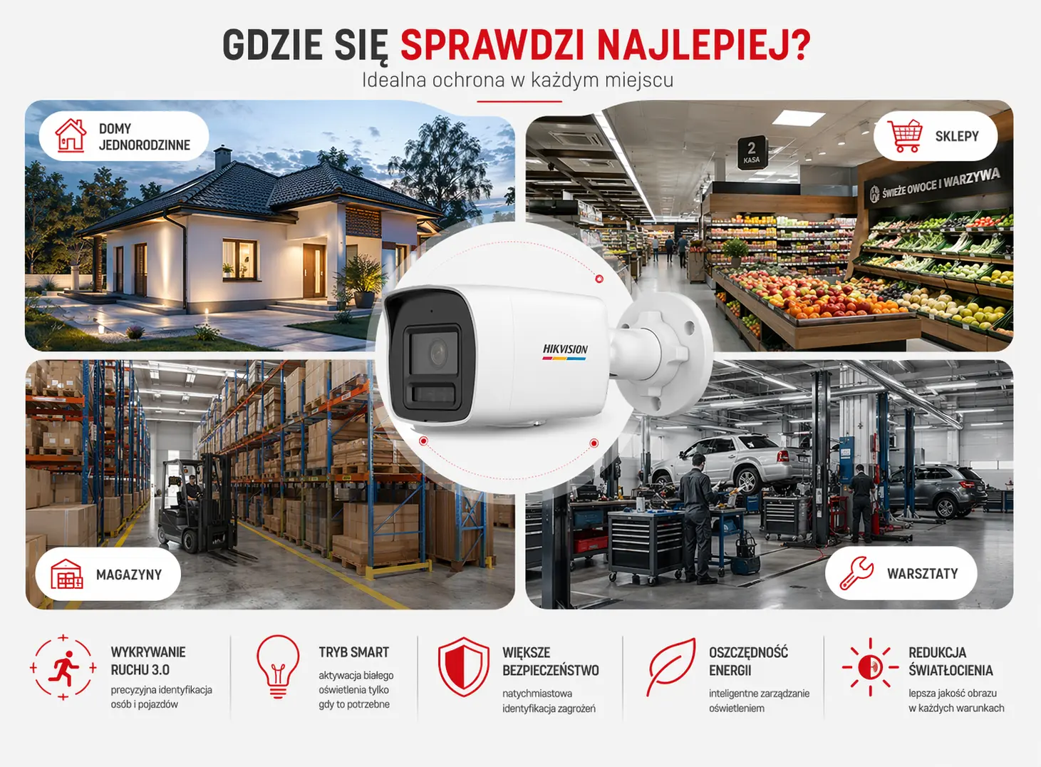 Wybierając kamery Hikvision Smart Hybrid Light, inwestujesz nie tylko w zaawansowany system monitoringu, ale także w inteligentne rozwiązanie, które dba o bezpieczeństwo, efektywność energetyczną i redukcję światłocienia w każdym zastosowanym środowisku.