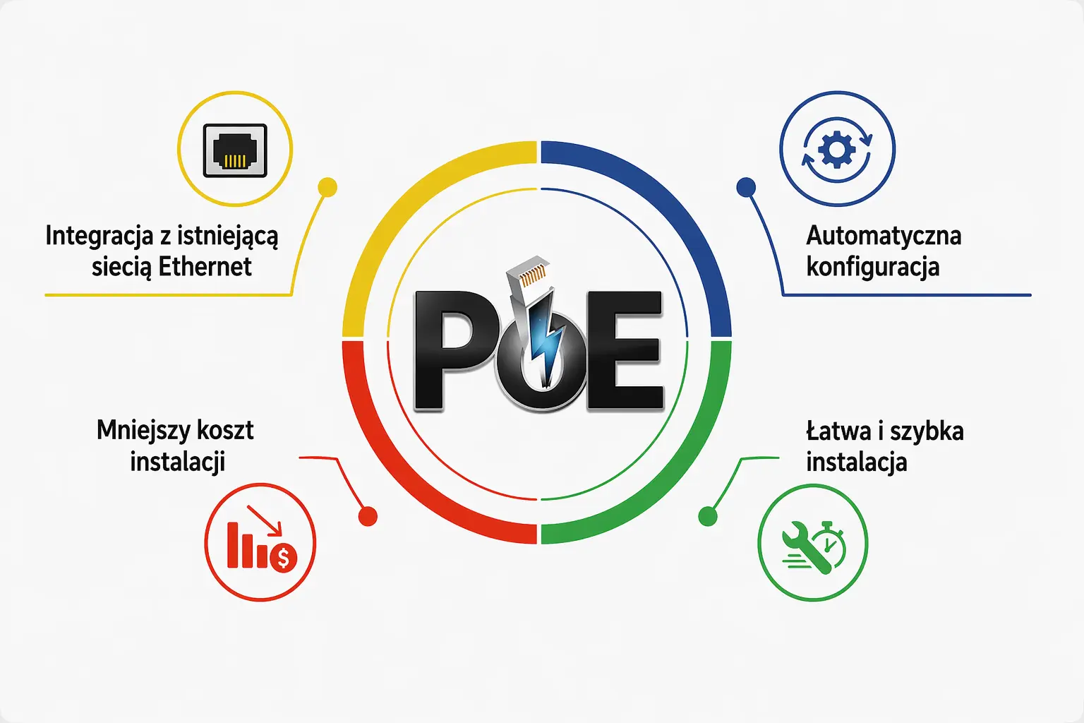 Power over Ethernet (PoE) to rozwiązanie umożliwiające łatwy i szybki montaż urządzeń sieciowych oraz wygodną obsługę i modernizację instalacji. Dzięki PoE w standardzie 802.3af, kamera IP może być podłączona przy użyciu zwykłej skrętki komputerowej UTP, co znacznie upraszcza system monitoringu i umożliwia umiejscowienie kamery w dowolnym miejscu, niezależnie od źródła zasilania sieciowego.