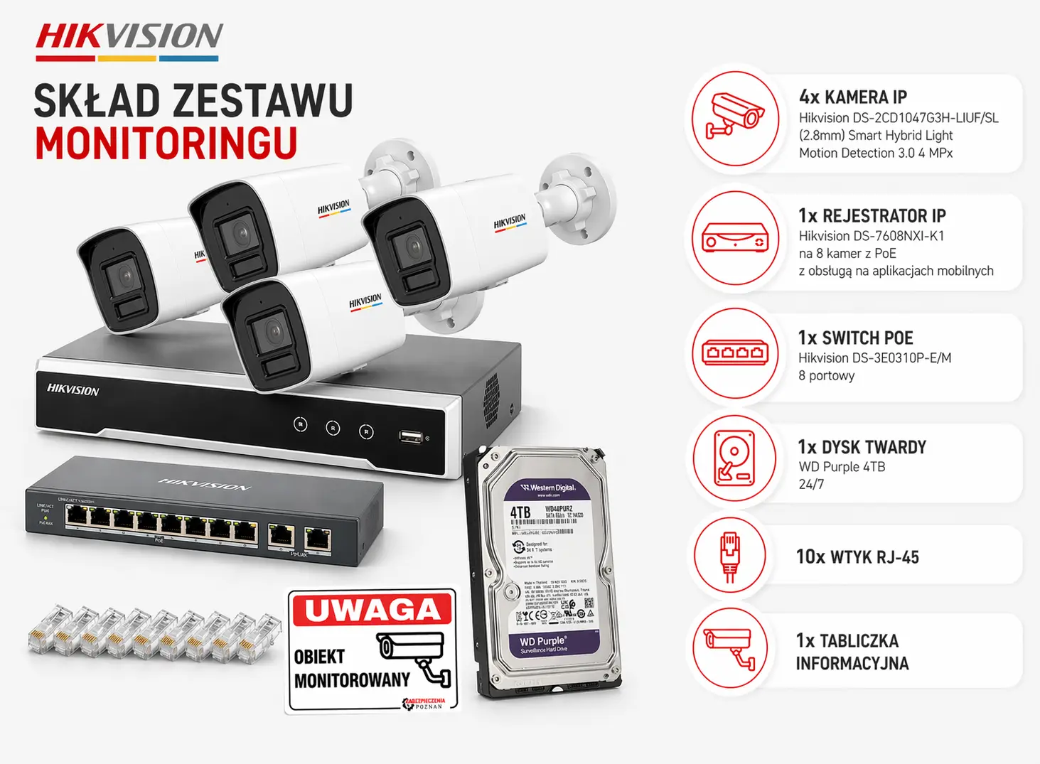 Nowoczesne kamery IP Hikvision zapewniają wyraźny obraz 4 Mpx (2560×1440) zarówno w dzień, jak i w nocy. Dzięki technologii ColorVu oraz Smart Hybrid Light rejestrują obraz w kolorze nawet przy bardzo słabym oświetleniu, automatycznie przełączając tryb pracy po wykryciu osoby lub pojazdu.