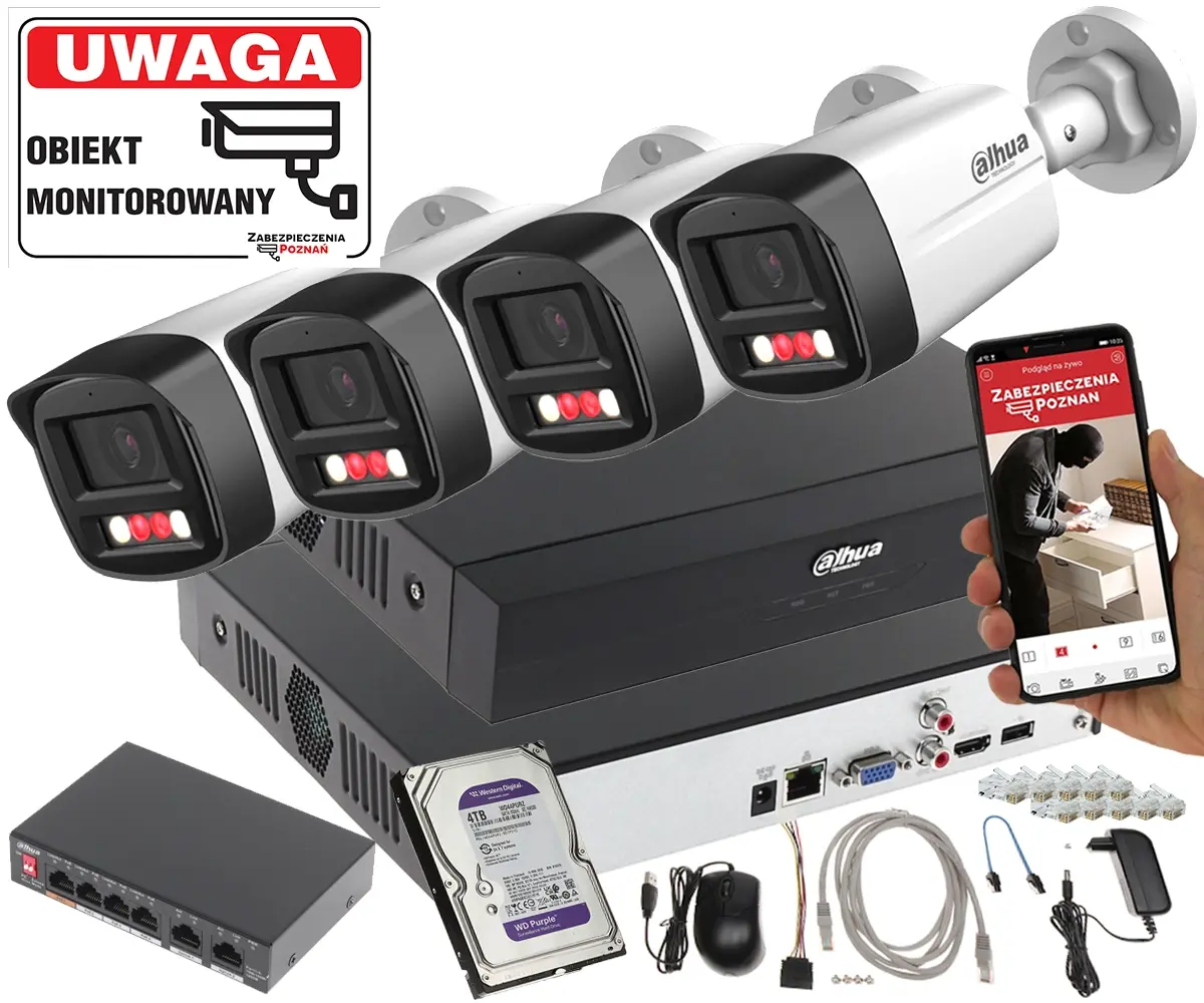 Ten zestaw czterech kamer Dahua IPC-HFW1439TL1-A-IL oferuje nowoczesne rozwiązanie do monitoringu IP, idealne dla wymagających użytkowników. Wyposażone w zaawansowaną technologię analizy obrazu i obiektyw stałoogniskowy 2.8 mm, te kamery dostarczają krystalicznie czysty obraz w rozdzielczości 2560×1440px dzięki zastosowaniu przetwornika CMOS 1/2.9”. Dzięki elastycznej kompresji danych H.265 / H.264 oraz dodatkowej technologii WDR 120 dB, każdy szczegół obrazu jest wyraźnie widoczny nawet w trudnych warunkach świetlnych.
