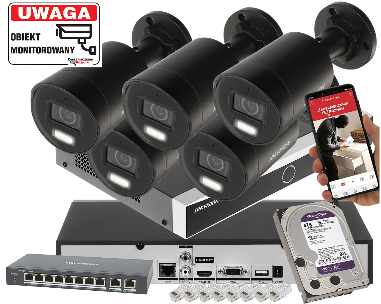 Kamera Hikvision DS-2CD2083G2-LI2U BLACK zapewnia wysoką jakość obrazu 8 MPx i skutecznie rozpoznaje ludzi oraz pojazdy dzięki technologii AcuSense. Wyposażona w Smart Hybrid Light, oferuje cztery tryby oświetlenia nocnego. Ma podwójny mikrofon, funkcję True WDR 120 dB do pracy przy silnym świetle z tyłu, a kompresja H.265 zmniejsza zużycie pasma. Obudowa IP67 gwarantuje odporność na trudne warunki pogodowe.