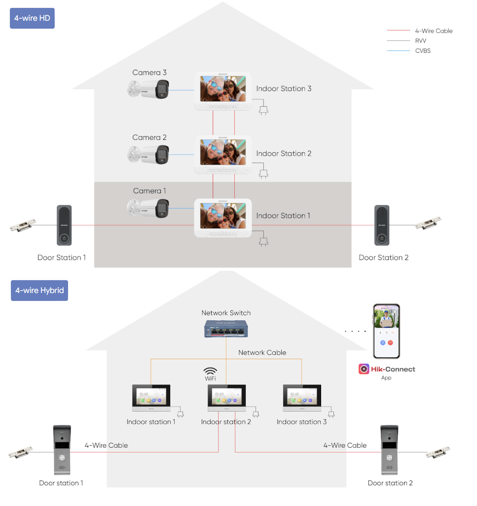 Rozwiązanie działa w trybie Plug & Play, co znacząco upraszcza montaż i pierwszą konfigurację. System można rozbudować o dodatkowe elementy — obsługuje do 3 monitorów oraz 2 stacje bramowe — dzięki czemu doskonale nadaje się zarówno do domów jednorodzinnych, jak i niewielkich budynków wielorodzinnych.