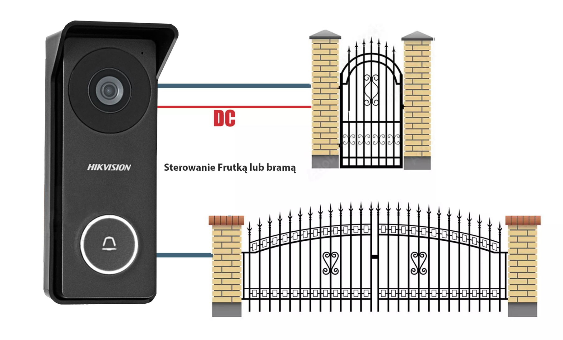 | Wyjście wideo: | 1 Vpp, CVBS - para przewodów zgodność z analogowym systemem wideodomofonowym HIKVISION |